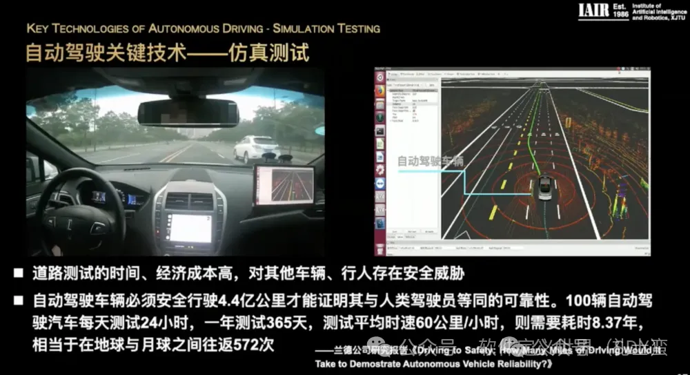 仿真测试也是自动驾驶重要的关键技术之一,自动驾驶汽车在大规模商业化应用前需要进行大量的测试,相关研究报告指出:在不犯错误的情况下,自动驾驶汽车需要行驶4.4亿公里,才能证明其在车祸致死率和人类驾驶员的水平相当。