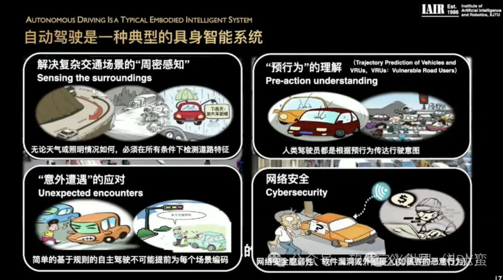 自动驾驶是开放环境中一类重要典型具身智能系统,在复杂交通环境下,自动驾驶安全要有可靠的驾驶行为。