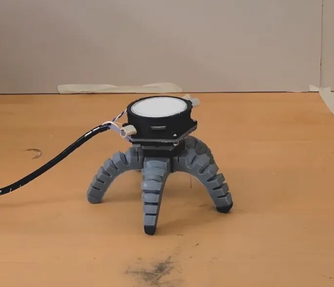 生物形态和机器形态混合的仿生智能成为当前研究热点,驱动“生物混合机器人”成为一个新兴的研究领域。该领域涉及将植物、动物和真菌细胞与合成材料相结合来制造机器人,为探索“碳基-硅基”融合、生物技术与电子技术混合等提供了全新的发展路线与试验验证。2月,美国加州理工学院成功开发了一种生物混合水下机器人,该机器人通过将电子元件植入活体水母体内来实现海洋探测功能[4]。该研究采用了三维打印技术,制造了一种装备有传感器的“水母帽”,并将其与活体水母相结合,通过水母在海底的自然游动行为,植入的传感器系统能够实时同步采集海洋的温度、盐度和氧含量数据。此外,该设备集成了一个电子起搏器,能够刺激水母以平时三倍的速度游动。这一创新性的生物混合水下机器人设计,不仅为海洋环境监测提供了新的思路,也展示了生物与电子技术融合的潜力。9月,美国康奈尔大学成功研制了一种由真菌和计算机组件构成的生物混合机器人(如图3所示),该成果发表在《科学·机器人(Science Robotics)》期刊[5]。该机器人能够将真菌对环境变化的生理响应转化为电脉冲,进而转换为数字指令。该研究显示,“真菌-计算机”接口有效地促进了菌丝体与机器人之间的通信,当对真菌的菌丝体进行光照处理时,产生的电脉冲能够有效地驱动机器人进行运动。此外,由于真菌具有避光性,增加紫外线的照射会导致真菌产生更强烈的电信号响应,从而加速机器人的移动速度。与传统合成机器人相比,新型的真菌“生物混合机器人”在检测农田中的化学污染物、毒素或病原体方面展现了更高的灵敏度。真菌能够在极端环境(如高盐度水体或低温条件下)生存,这使得该类机器人在极端环境中的适用性优于动物或植物生物混合机器人。另一个优势是,这些机器人在完成任务后,所需的清理工作较少,且遗留的有害物质也相对较少。这些特性使得真菌生物混合机器人在环境监测和探测领域具有广泛的应用潜力。