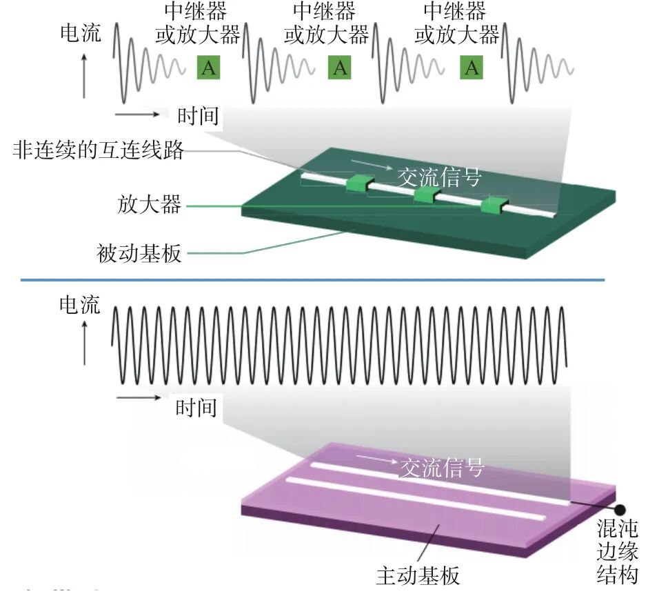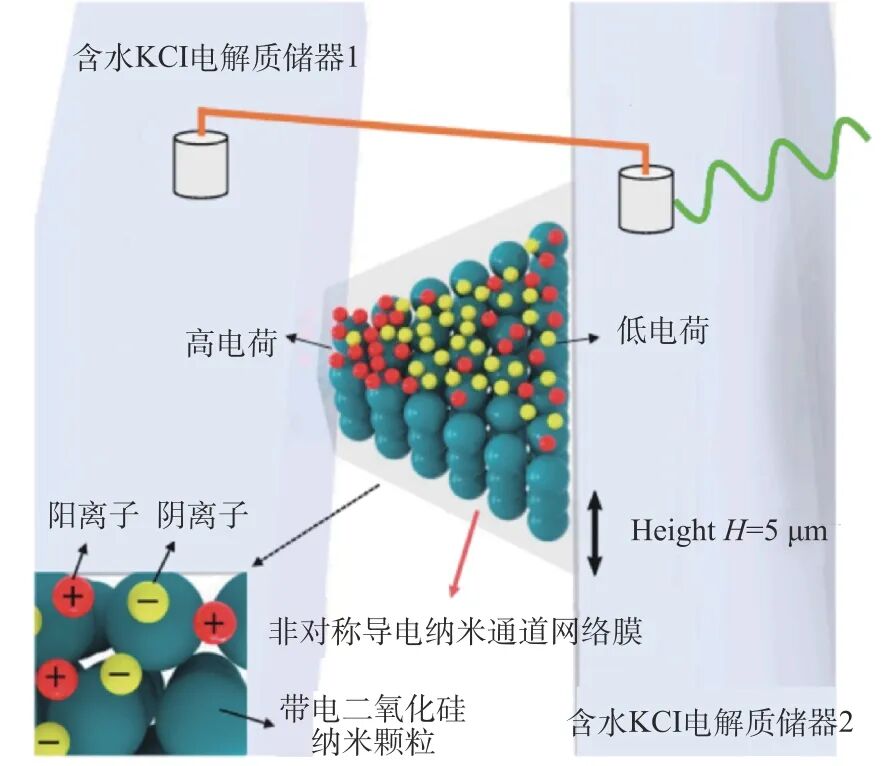 类脑计算牵引类脑仿脑智能发展,通过模拟人类大脑的结构和功能,来实现更加智能化的机器学习和智能系统。为提升人工智能计算效率、降低能源消耗、规避通信损耗,模拟大脑结构(重点在于约占人类大脑重量80%的大脑皮层结构)及信号传递机理,采用从技术图谱到元器件研发的发展路线,逐步实现“微观单元-宏观结构”一体化动态模拟和协同学习建模。6月,在盖茨基金会支持下,美国Numenta公司启动名为“千脑计划(Thousand Brains Project)”的类脑智能研发项目[6],旨在开发一套类脑人工智能技术及原型系统,该框架将按照与人脑相同的原理运行,但与当今主导人工智能的深度神经网络的原理有着根本的不同。该项目通过对大脑皮层进行逆向工程,构建全新且可靠的人工智能技术体系,以应对当前深度神经网络在能耗和稳定性方面所面临的挑战。整体而言,该计划的目标是模拟大脑皮层的结构,其中每个皮质柱都被视为一个独立的学习机器;通过多个单元的协作,模拟神经科学的结构,以实现感知运动任务和学习过程。项目强调大脑皮层在感知运动学习中的关键作用,并提出大脑能够以动态方式学习,从而适应新的数据。该研究目前的主要焦点是算法与软件开发,为后续硬件的设计与研发打下基础,以期未来最终构建新型的计算机系统。Numenta公司承诺,其研究成果将开源发布,并不会对相关技术主张专利权。2024年,仿生人造轴突、仿生人造突触取得突破性进展,为类脑计算硬件研发提供支撑。4月,荷兰乌得勒支大学联合团队构建一种新型人造突触设备,与传统基于固体材料的人造突触不同,新突触基于人脑内的介质水和盐构建一种锥型微流体通道结构(如图4所示),并首次证明,与人脑相同的介质系统可处理复杂信息,相关成果发表于《美国国家科学院院刊(Proceedings of the National Academy of Sciences)》期刊[7]。该人造突触尺寸为150 μm×200 μm,被称为离子电子忆阻器,包含一个充满水和盐离子的锥形微通道,能够根据输入电脉冲的强度调节通道的电导率,模拟神经元间连接的强化或弱化过程,展现出类似生物突触的行为机制。此项研究通过使用与人脑相似的介质来模仿人脑的通信模式,为创建能够更真实地模拟人脑卓越计算能力的计算系统奠定了理论基础。9月,美国德克萨斯农工大学、桑迪亚国家实验室和斯坦福大学联合发布一种受到大脑轴突启发的全新材料,相关成果发表于《自然(Nature)》期刊[8],标志着通过模拟大脑轴突功能以提升计算技术方面取得了重要进展。轴突是脊椎动物神经细胞或神经元的一部分,可以将电脉冲从神经细胞体传导出去,受此启发,该材料在传递电信号过程中能够实现自发放大,从而克服了传统芯片中信号衰减的问题。该成果利用特殊电子材料的电子相变特性,通过加热手段来增强材料的导电性,有效地避免了信号损耗,并展现了负电阻等特性,形成了全新的仿生主动式电信号传输方案,在整个完整的信号路径中连续实现信号放大(如图5所示)。这一发现有望显著提高计算效率,特别是在人工智能和大规模计算领域,有助于应对日益增长的能源需求。