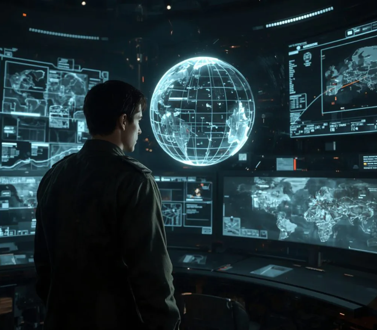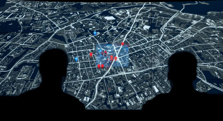 图人类分析员监控战场全景图——该任务日益依赖AI将海量数据流转化为可执行情报。
