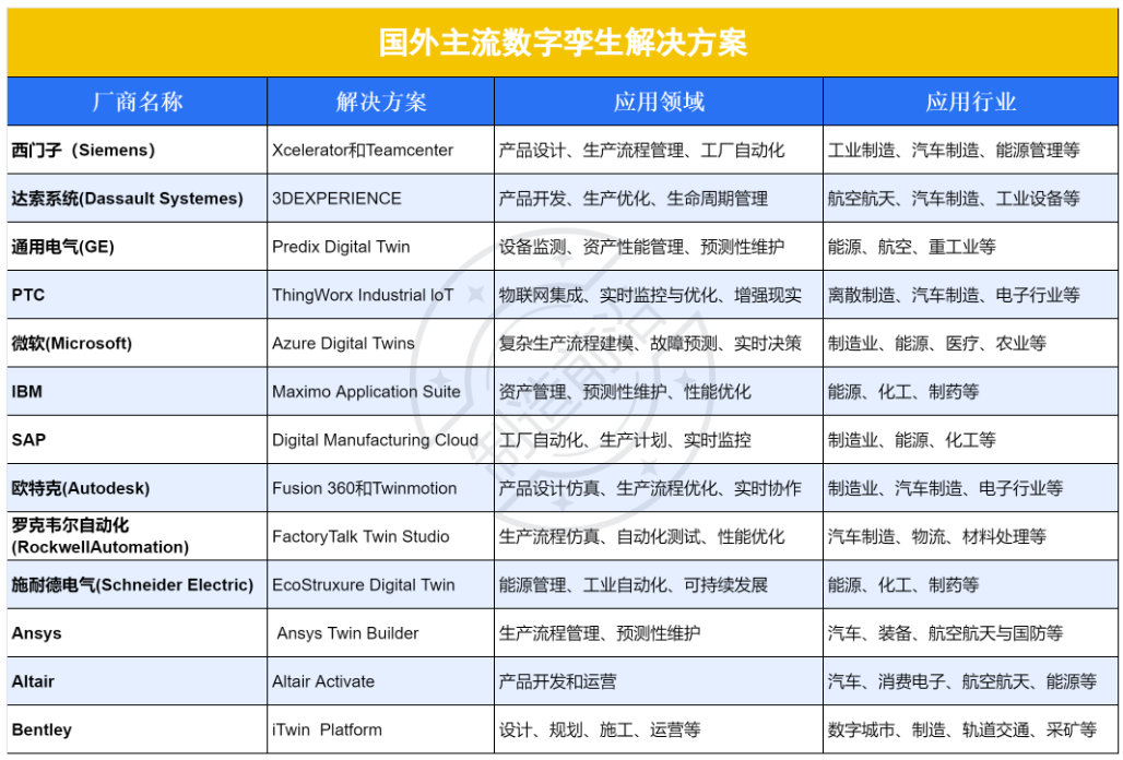 各领先企业如 GE Digital、西门子、 PTC、Ansys、达索系统等,凭借其强大的技术基础, 开发了如 Predix、COMOS Platform 和 ThingWorx 等综合性平台,正在定义这一领域的未来。