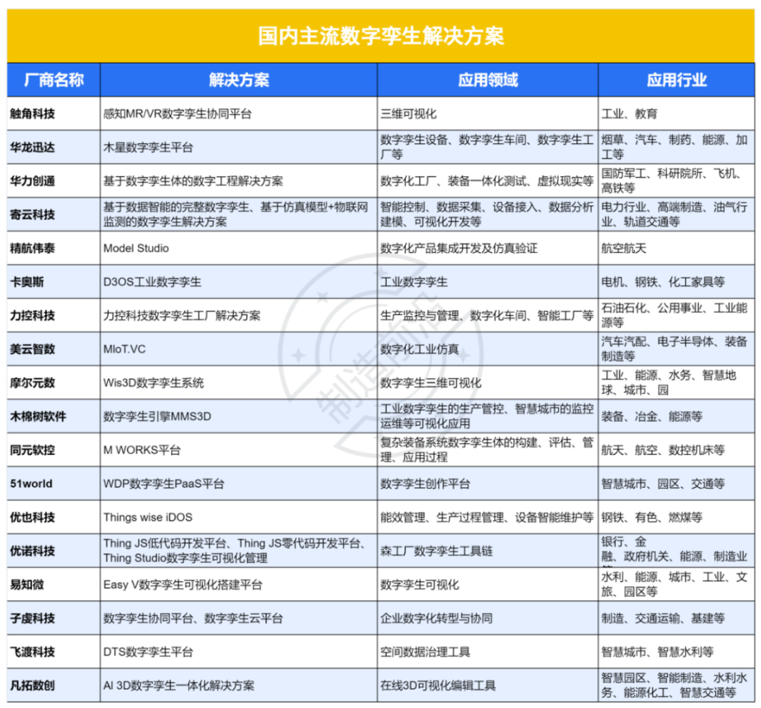 在中国,数字孪生技术的应用与发展正吸引越来越多企业的关注与投入。众多解决方案供应商如美云智数、华龙迅达、寄云科技、 力控科技、精航伟泰等,均致力于在特定应用场景或行业中提供创新的数字孪生服务。
