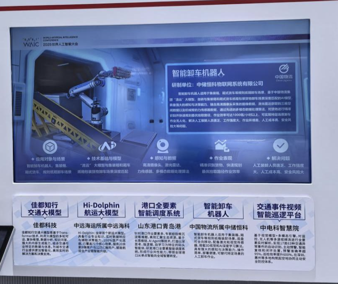 中国宝武宝信软件自主研发的“钢铁大模型”已实现105个典型场景的深度应用,在钢铁行业覆盖高炉诊断、炼钢优化、设备维护等18类核心业务,关键工序覆盖率突破85%,成为行业首个全场景集成式AI解决方案;中国煤科“煤科卫士大模型”构建了涵盖“监测预警-诊断决策-资源调度-效果评估”的全链条智能运维生态,在提升售后响应效率、提高设备综合利用率、减少故障停机时间及降低维修成本等方面取得了显著成效,能实现对设备的全天候监控、故障预判和高效运营服务;中国远洋海运在大会上全面展示航运业的创新实践路径,其国内首个航运垂类大模型 Hi-Dolphin自主算力底座基于国产芯片与开源框架构建,微调仅需5 PFLOPS专业算力,航运智慧智库集成超100个垂直智能体,一句话查询即可通过90+实时接口掌握全球船舶、港口、航线动态……