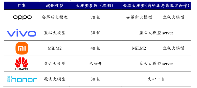 - 目前国内终端厂商的端侧大模型