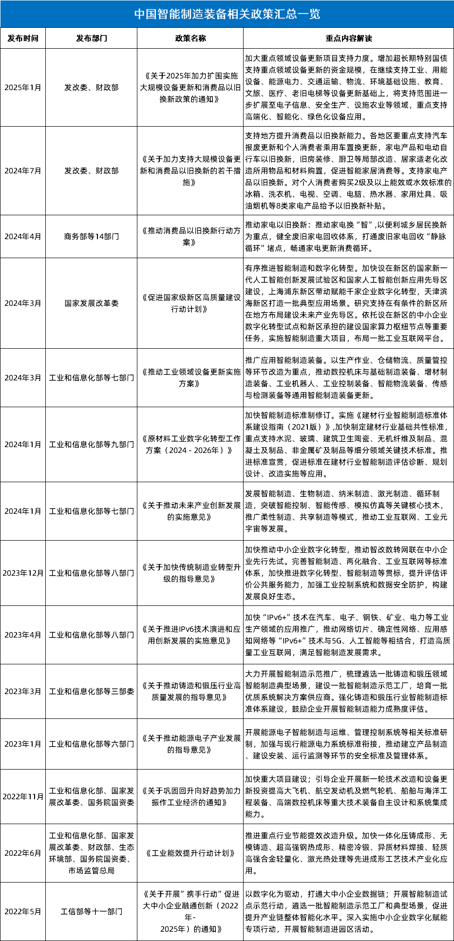 国家颁布了一系列有利于智能制造装备行业的产业政策,以促进行业的健康发展。具体政策内容如下图所示: