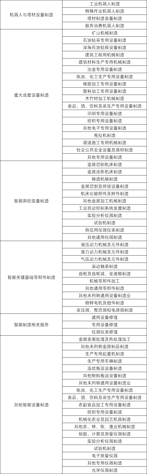 根据《工业战略性新兴产业分类目录(2023)》,智能制造装备产业主要分类包括机器人与增材设备制造、重大成套设备制造、智能测控装备制造、智能关键基础零部件制造、其他智能设备制造、智能制造相关服务。