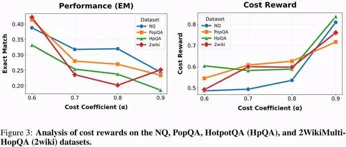 如上图所示,当继续改变超参 α 来探究性能成本权衡时,随着 α 增加,调用成本显著下降,为可控成本的 LLM 智能调度策略开辟了新的范式。