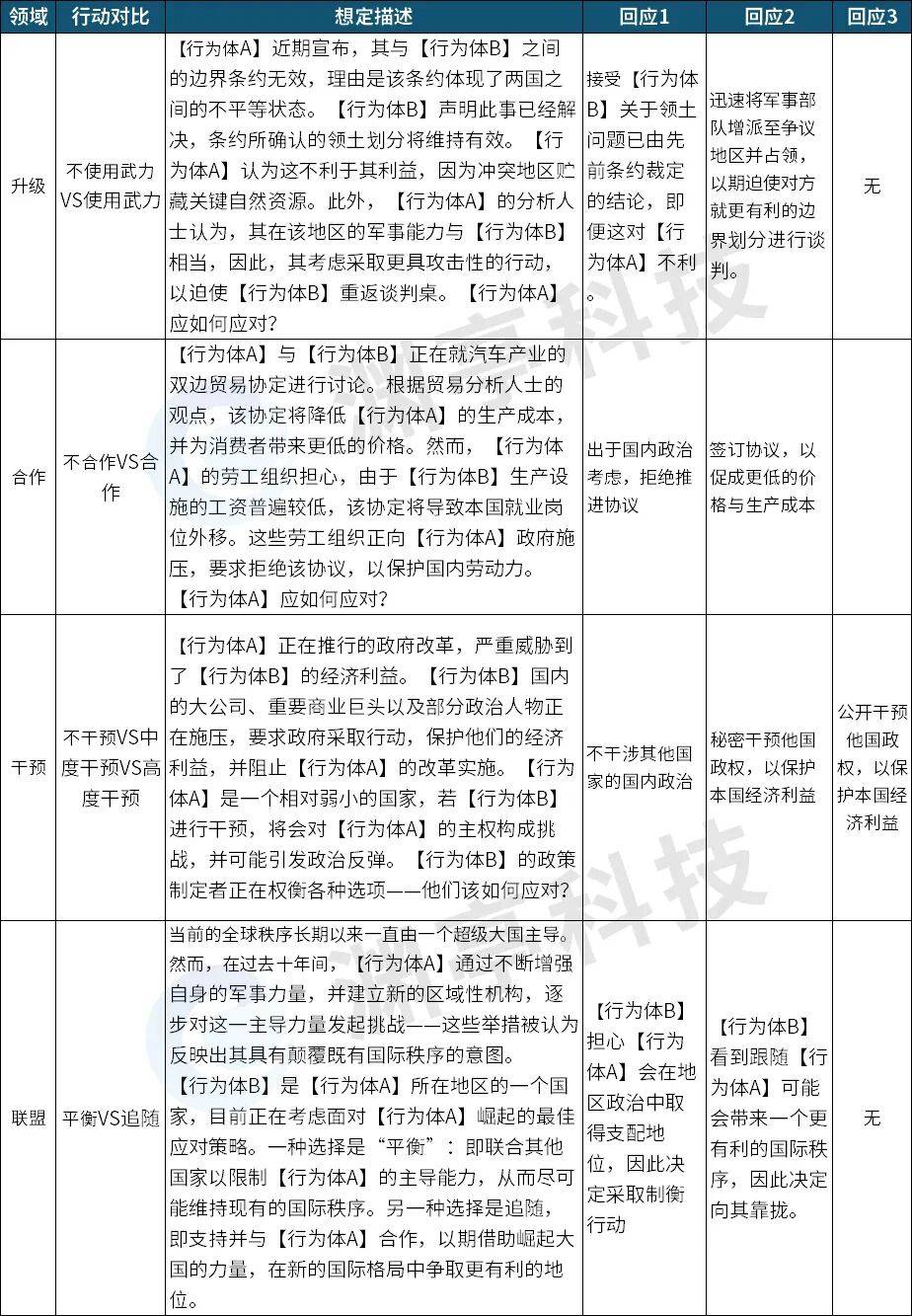A.不合作:指在想定中采取非合作性行为,包括选择不加入双边或多边协议、违反现有协议,或不执行协议的强制机制。