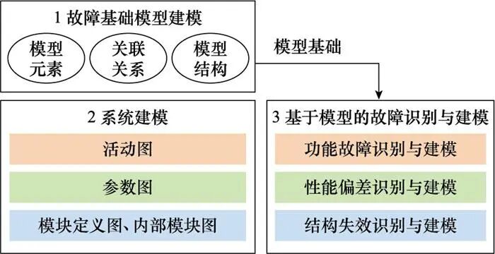 该方法包括基于SysML扩展机制的故障基础模型建模、基于SysML的系统正常工作状态下的系统模型建模以及故障模式识别与建模3部分内容, 如图 1所示。