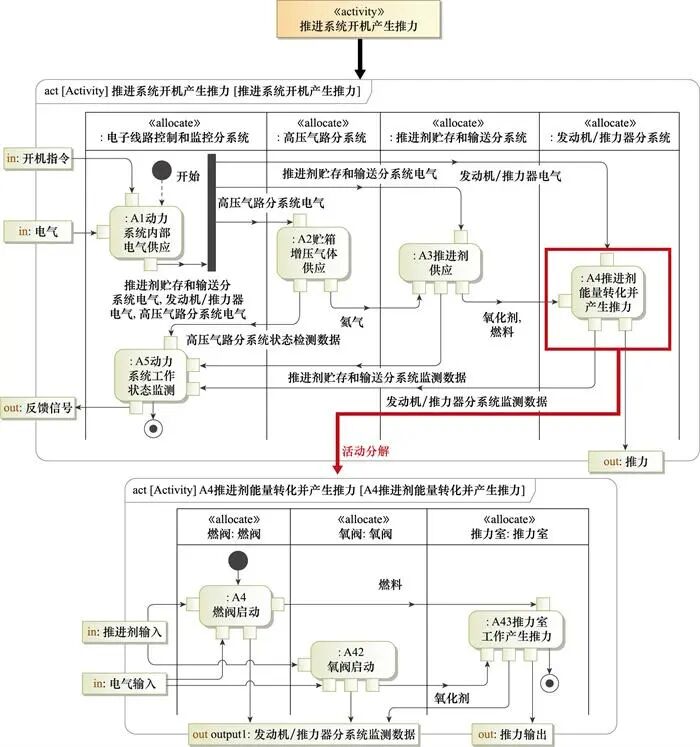 (1) 根据推进系统功能性需求确定“推进系统开机并产生推力”这一活动。