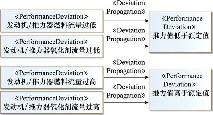 推进系统的性能偏差及参数偏差均采用“性能偏差”这一构造型进行描述, 利用“违背”关系描述性能偏差不能满足性能指标的情况。
